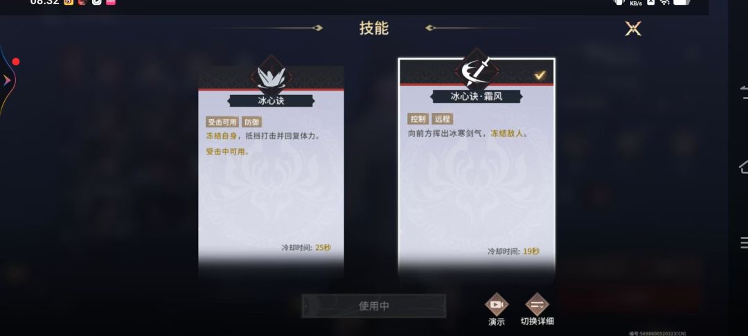 小技能2,冰心诀.霜风,主动技