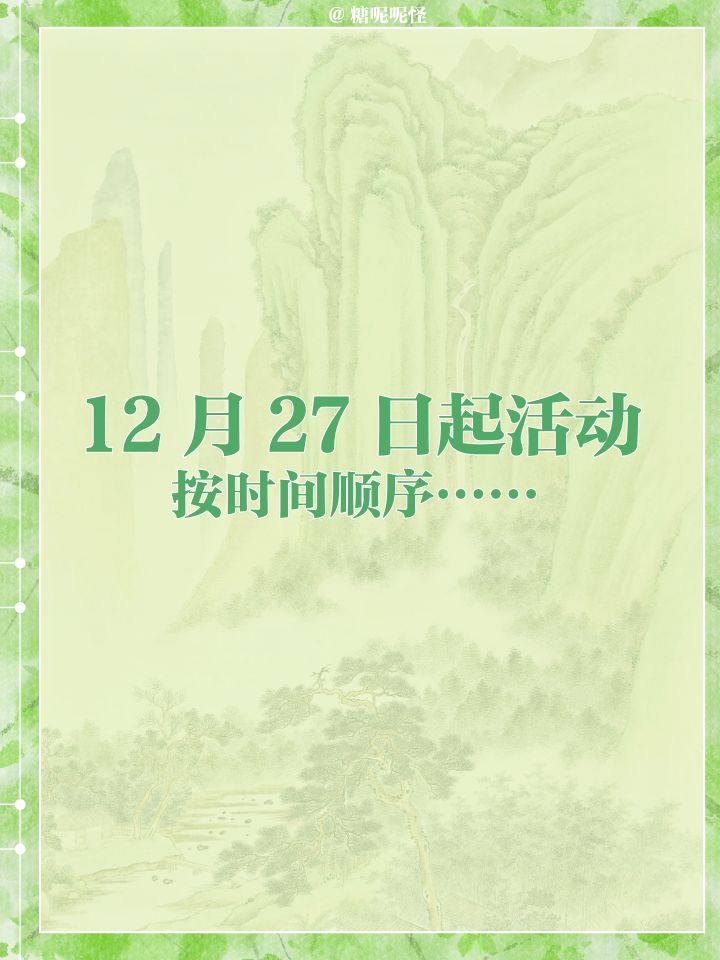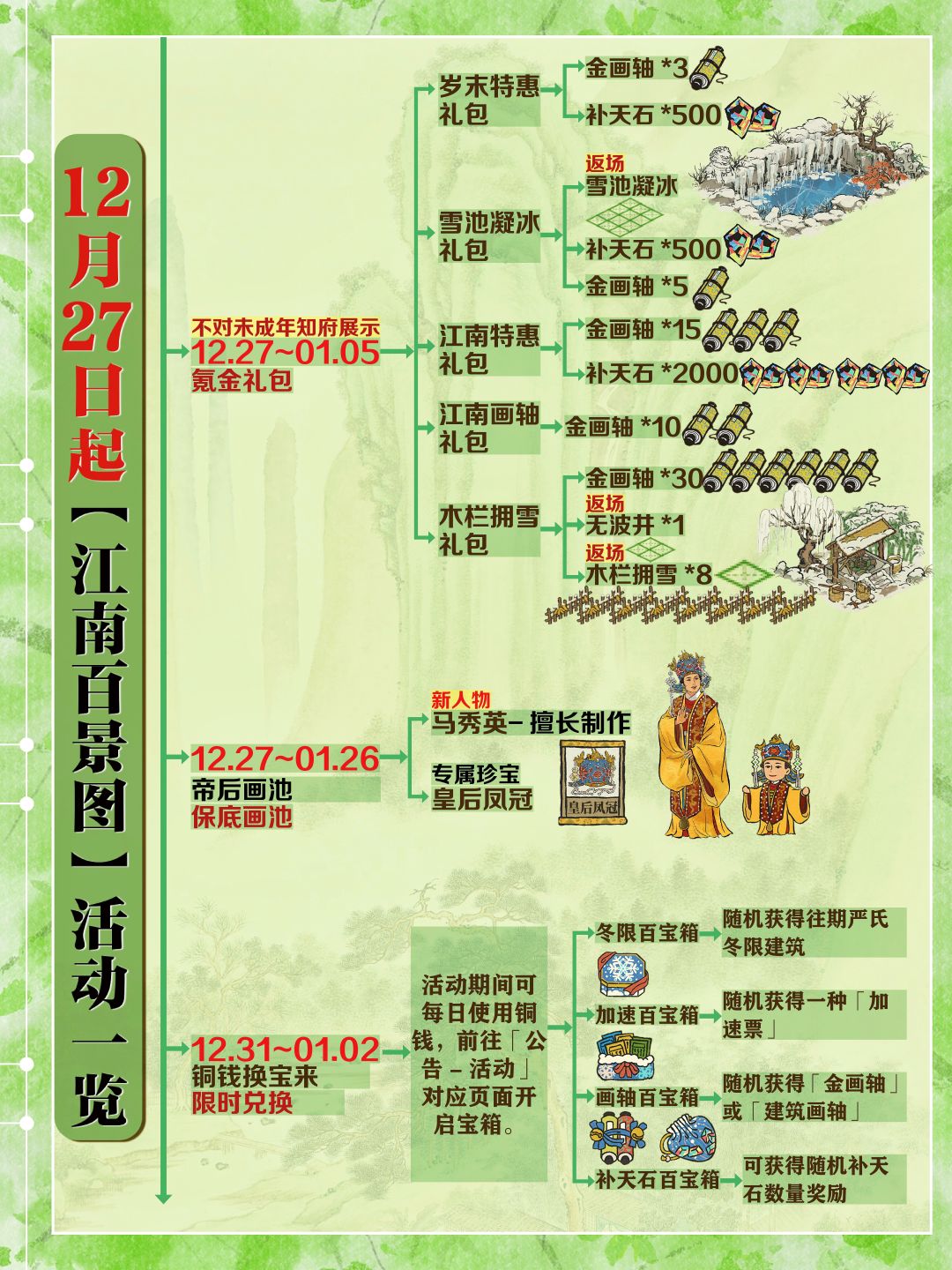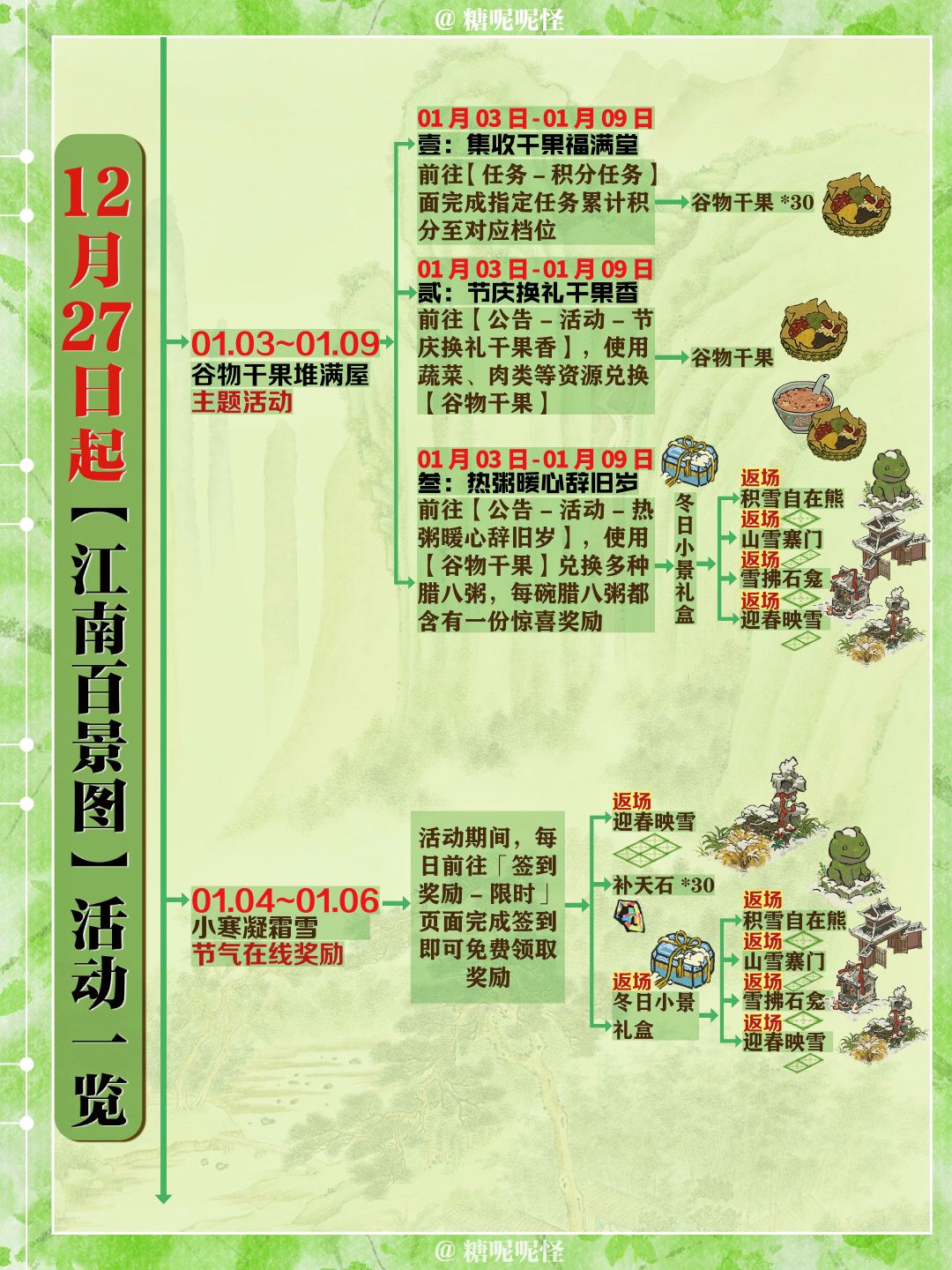 4️⃣返场建筑:烟雨画池返场|兔子酿酒坊|雪池凝冰|无波井|冬雪天妃宫|一览峰|年味老家|刑天雕像|
