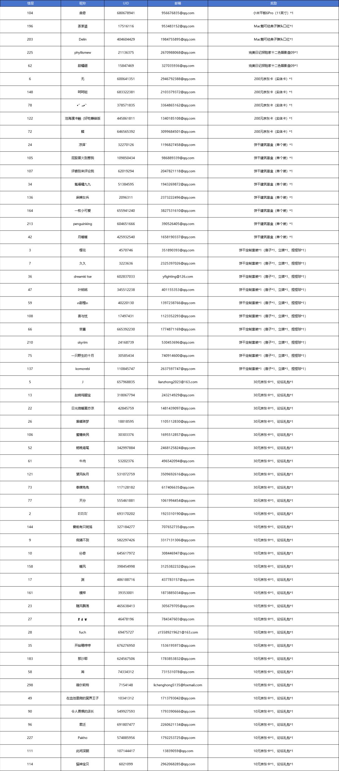 7.活动结束后15个工作日内将会公布获奖名单,请到本帖查看开奖公告。获奖名单公示后,请获奖玩家于公示期提供相关获奖信息,逾期视为放弃奖励!