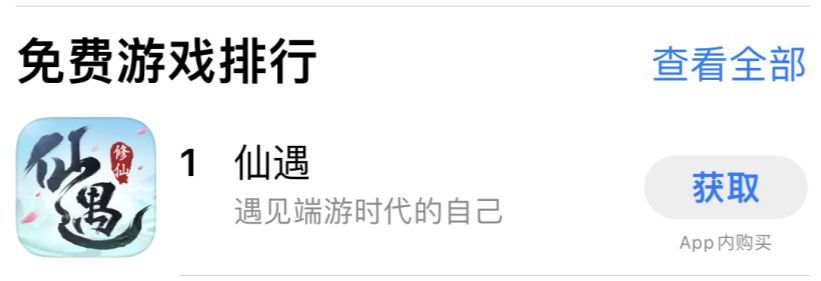 看到“中年玩家”诉求的《仙遇》,果然爬上了榜1