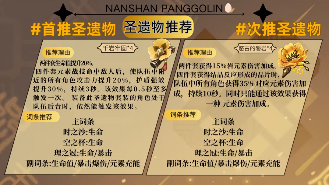 圣遗物推荐选择:千岩牢固和悠古的磐岩