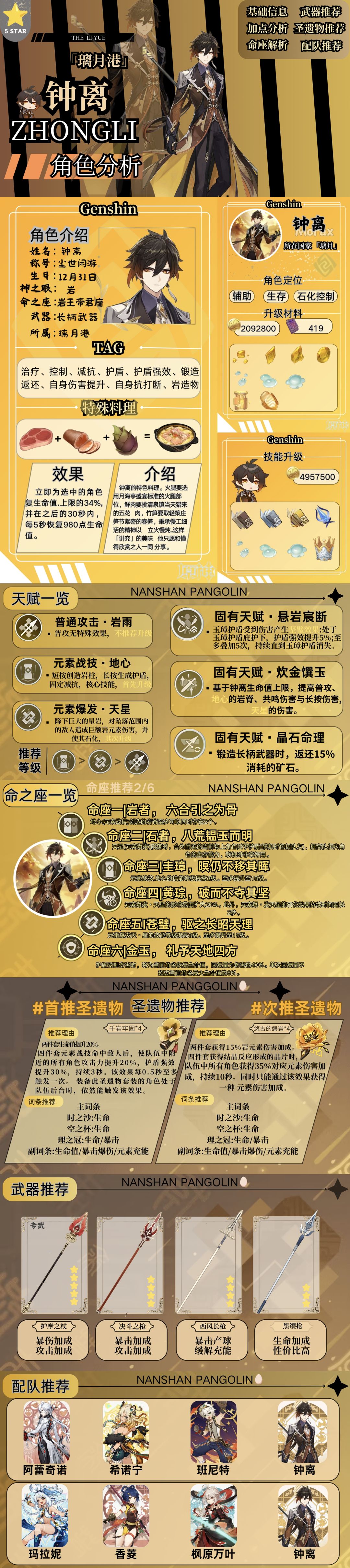 钟离本身就可以选择走辅助或者带上专武选择作为副C,都是可以用的,适合很多队伍,这里穿山甲也是推荐两个比较好用的队伍