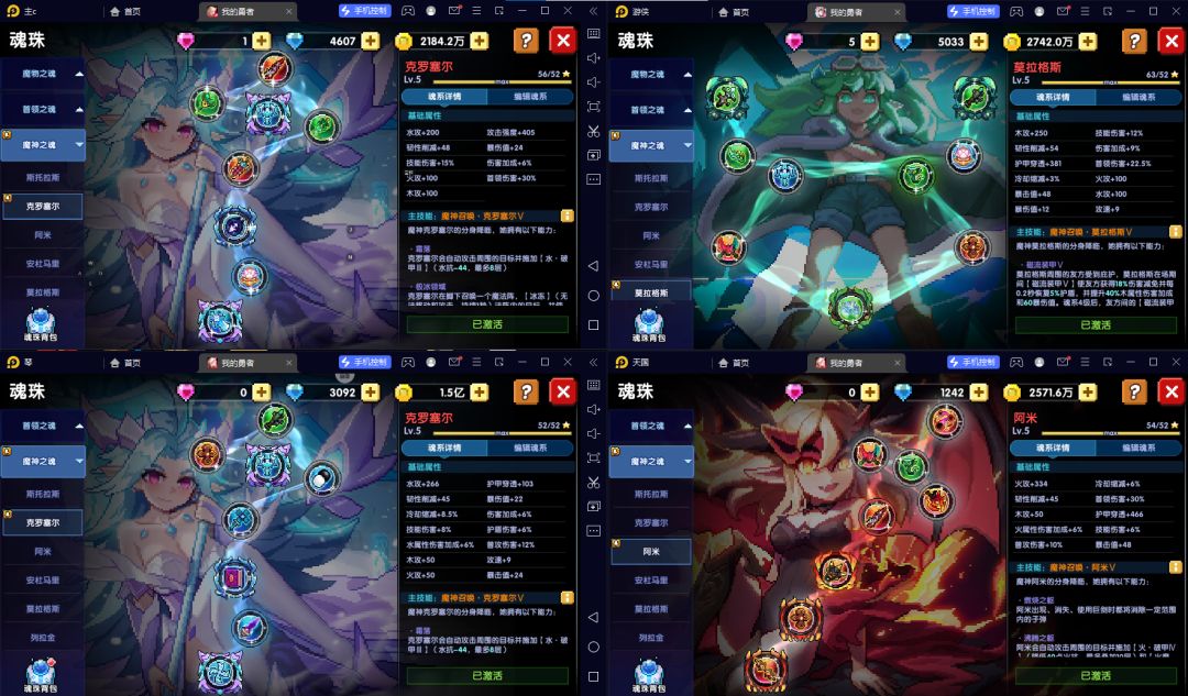 - 游辅带安杜马里(无条件4.5木易伤)或嘉波魂珠(自身拥有20能量回复时,施加7.5%木易伤),能量回复靠天赋和魂卡凑(嘉波魂珠七星通用效果,每42能量上限,转化为3能量回复)