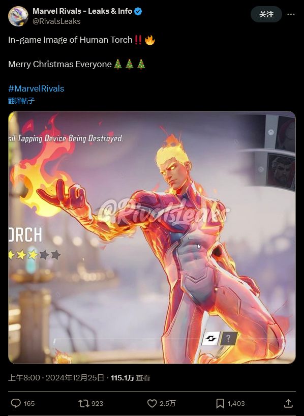 近期推出后受到大量好评的角色射击游戏《漫威争锋》的未来角色,神奇四侠中的霹雳火的形象和技能细节已在网上泄露。
