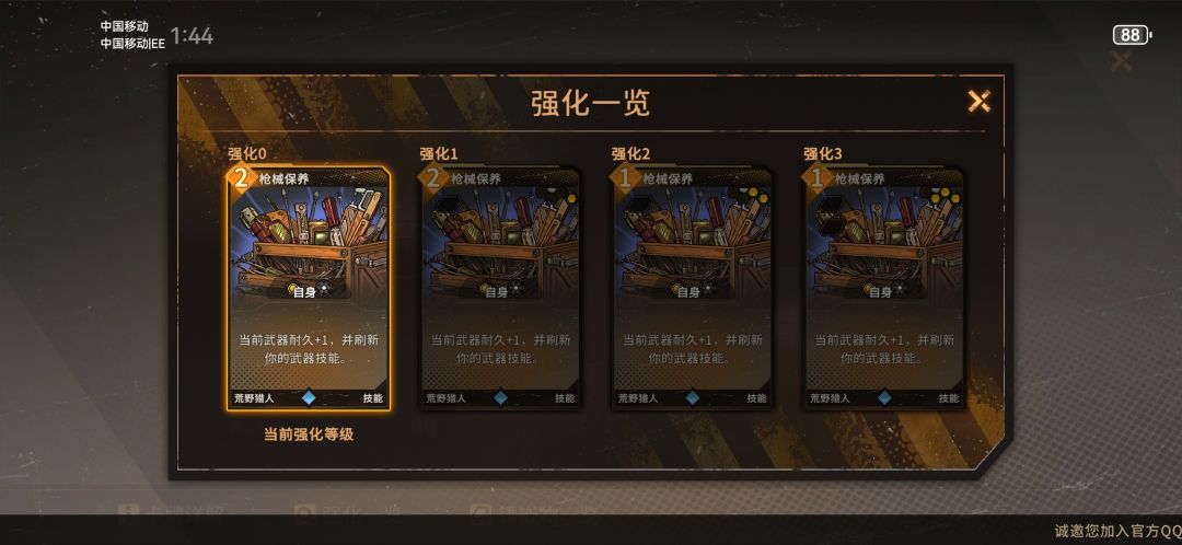 此时武此时武器大师米拉琴已经接近完全体。大多数情况下,你可以直接去打boss了。如果你依旧不放心,那么你可以在地图上多转转,把等级肝到9级或者10级,额外点亮移动力加一以及装备附带的额外技能。