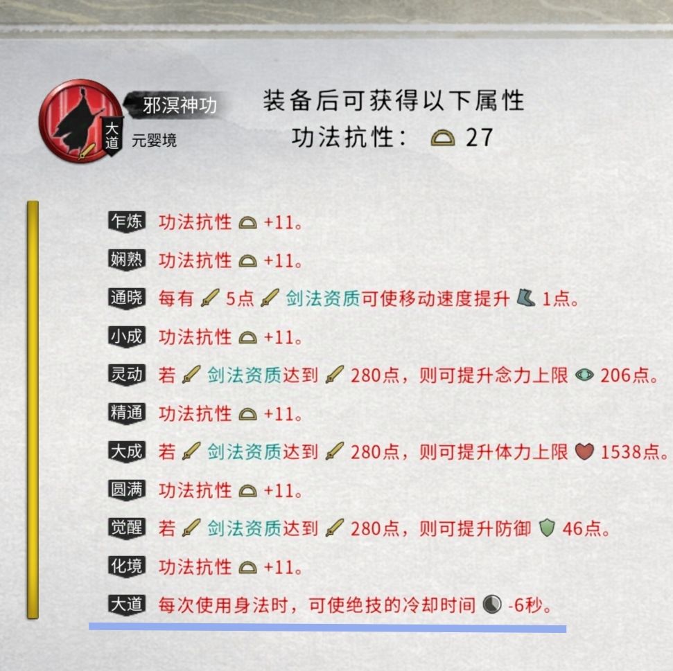 词条:1.使用身法使绝技冷却-6秒