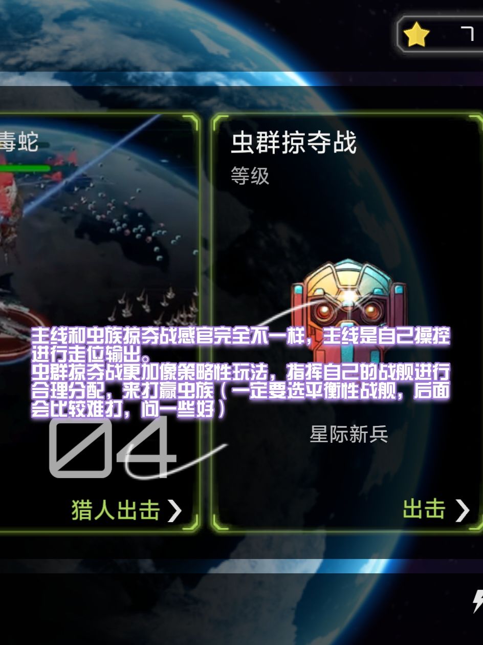 虫族入侵玩法属于策略性玩法,用自己的舰队通过强化属性,分批和克制关系来击败对方母舰。