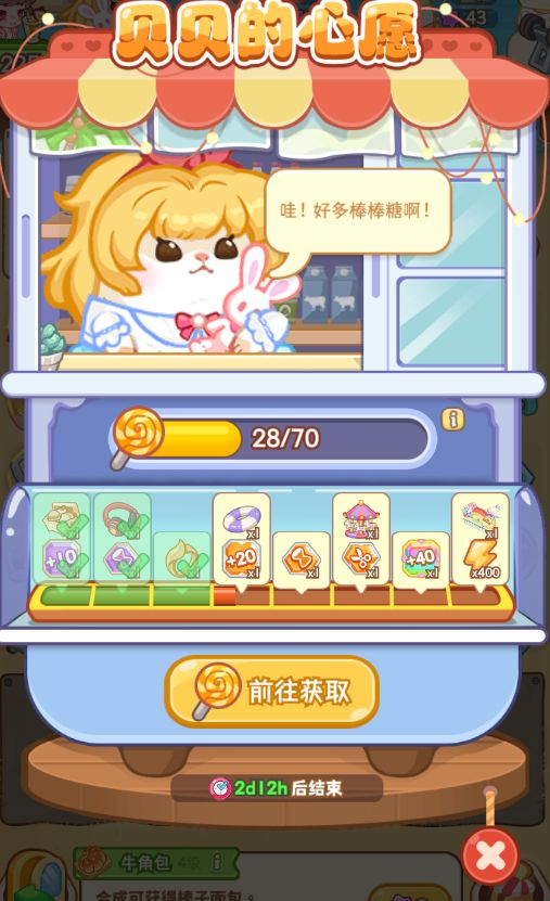 通过完成合成订单获取不等数量的棒棒糖,送给贝贝就能获得丰厚奖励。