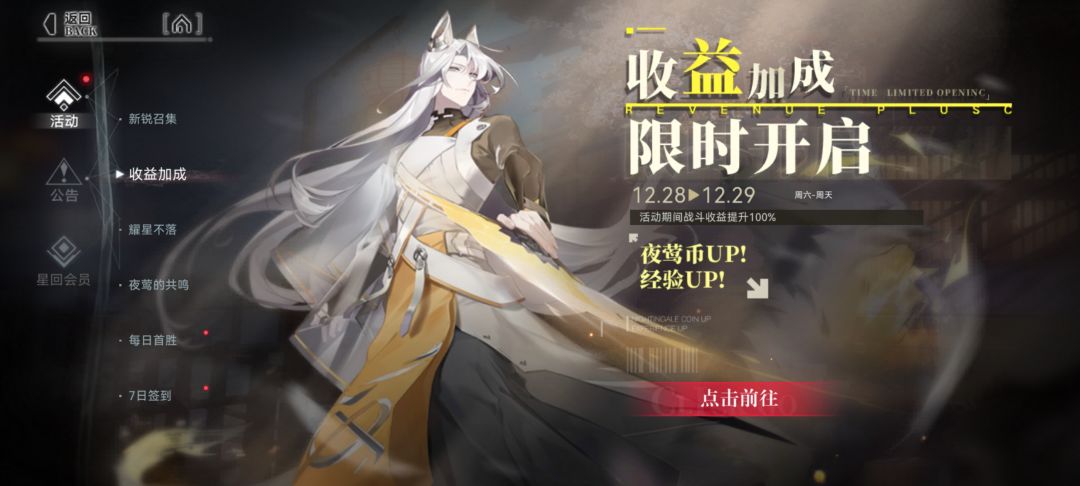 活动一:年终冲刺,经验、夜莺币收益翻倍!