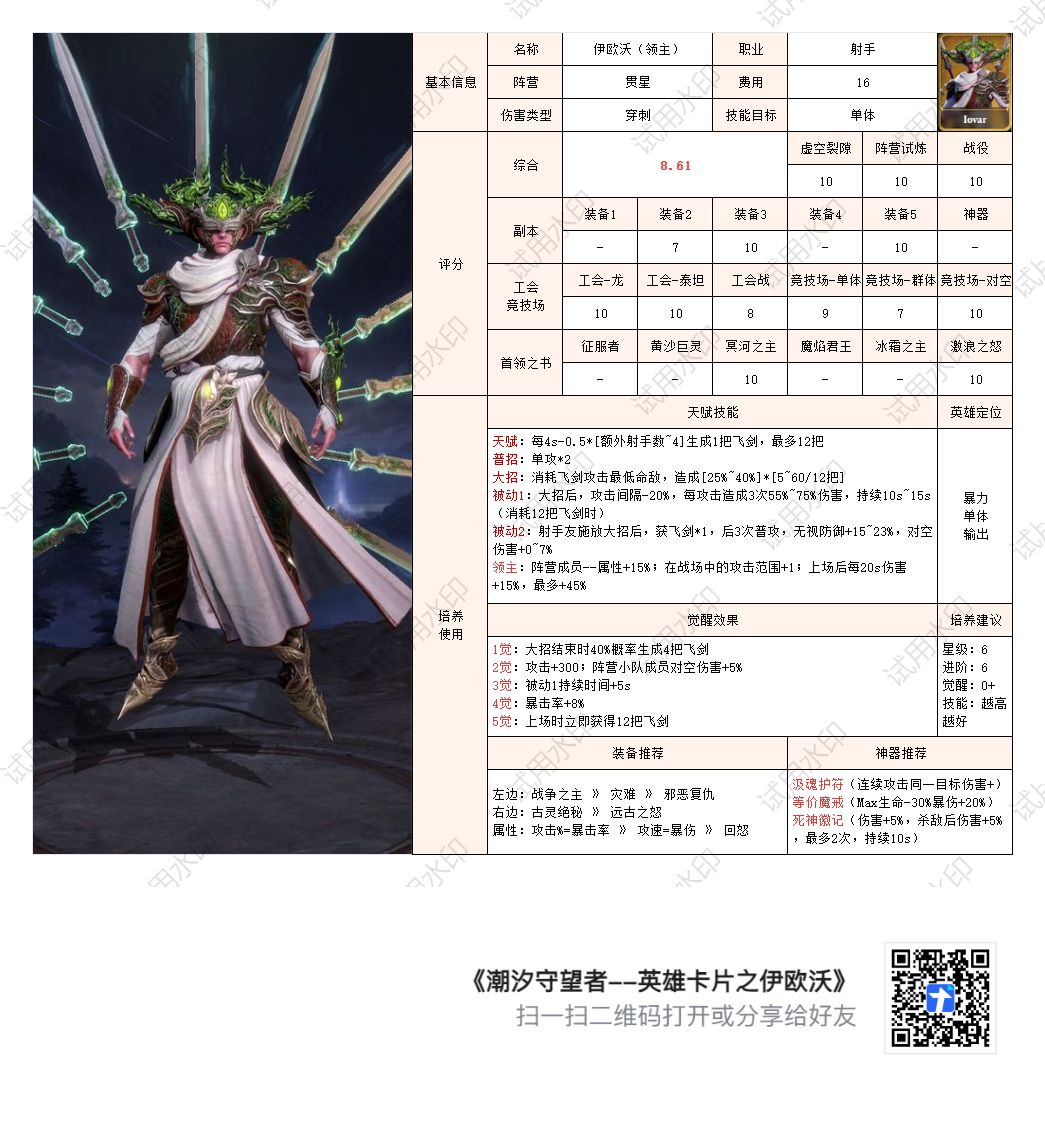 本帖为个人发布的有关潮汐守望者的系列攻略的索引贴,方便查找。**关于英雄综合评分算法说明**目前,综合评分是在单项评分的基础上,结合英雄泛用程度,用一套算法计算得出,大部分英雄评分与使用感受符合,不排...