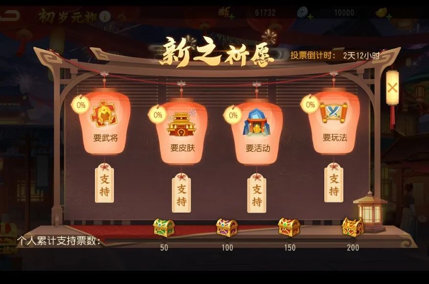 2、主公可以消耗祈愿签支持心仪的祈愿灯笼。