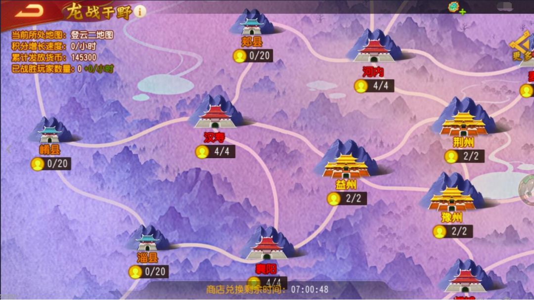 2)每天10:00前会对该地图中潜龙之力排名前列的主公进行登云,不同层的不同地图可以登云的人数不同。