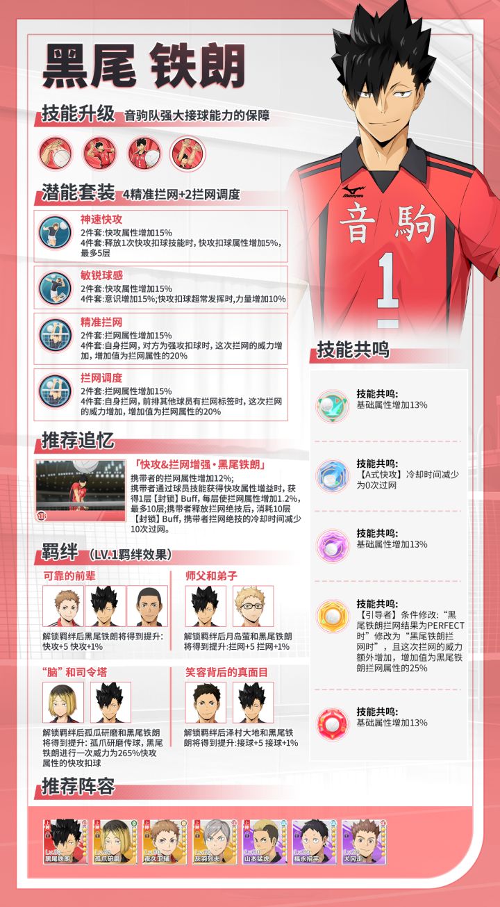🐈⬛想招募却不知道如何养成?一张图带你全面了解「黑尾铁朗(MB)」的强力羁绊、推荐阵容、技能共鸣!