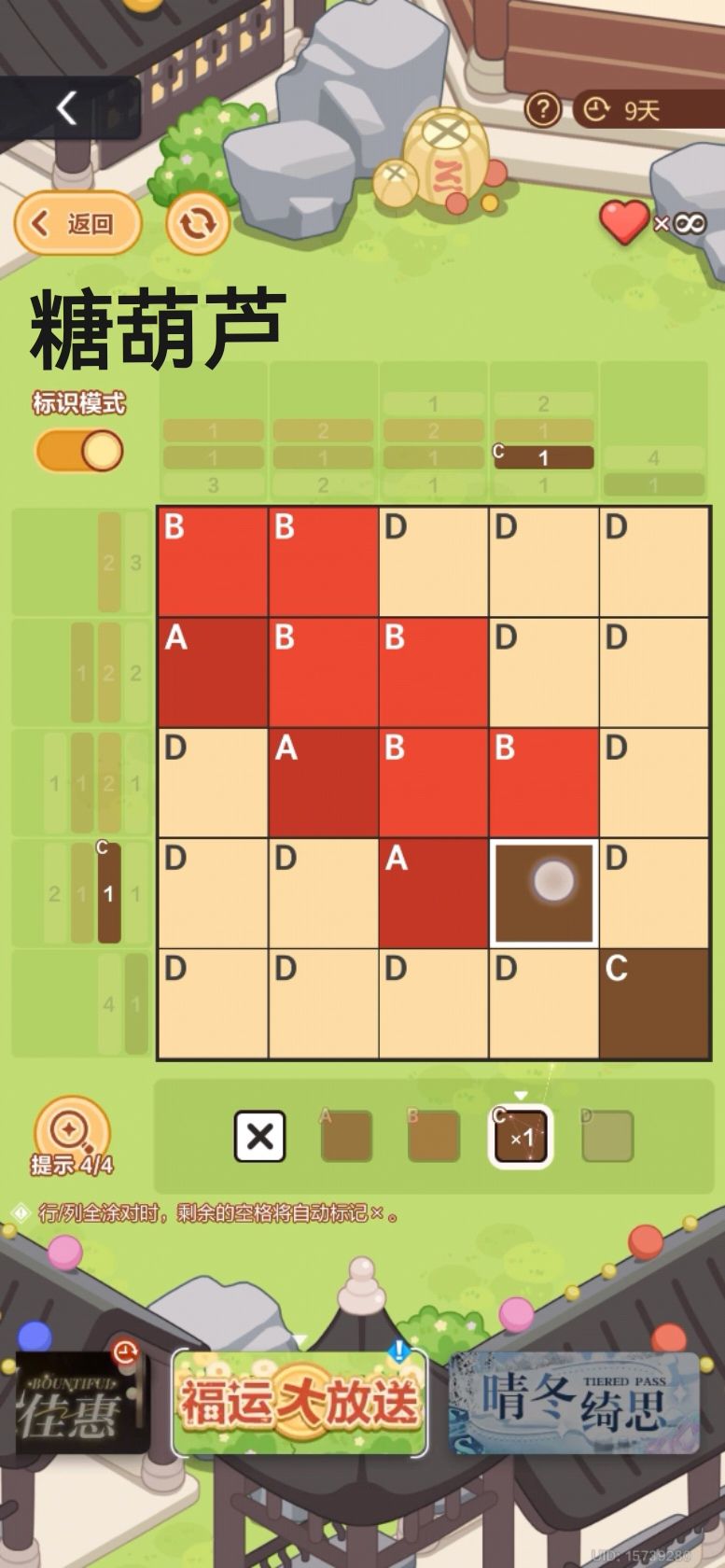 又是消耗超多体力的活动。不想分颜色可以左上角打开标识模式。