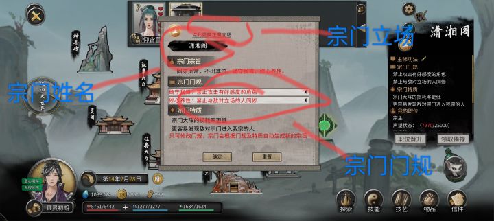 首先是宗门立场和宗门姓名及门规的修改位置,它在宗门姓名上面有个改的图标,点击就能进入修改界面