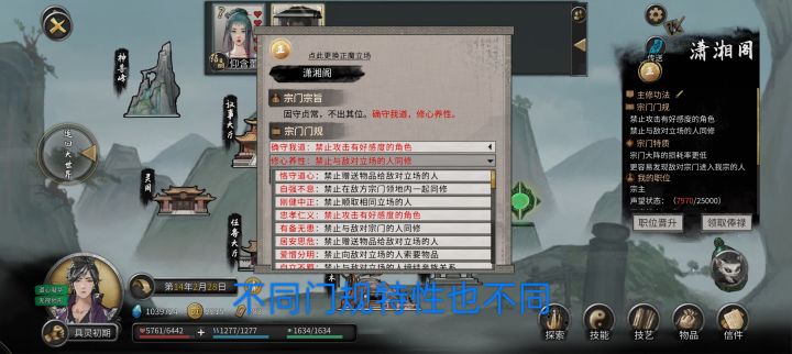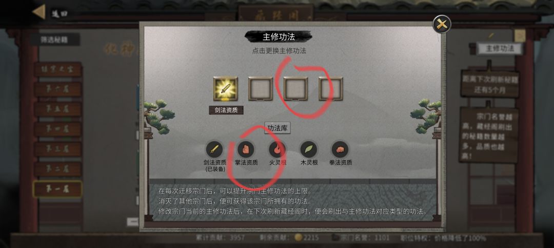 然后是宗门藏经阁功法类型修改地点,在藏经阁里右上角有个主修功法按钮,里面修改功法种类,攻打的宗门越多,可选择的功法种类越多,建议在云陌州占领