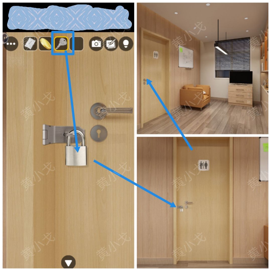 30.点击卫生间门上的锁,用【卫生间钥匙】打开