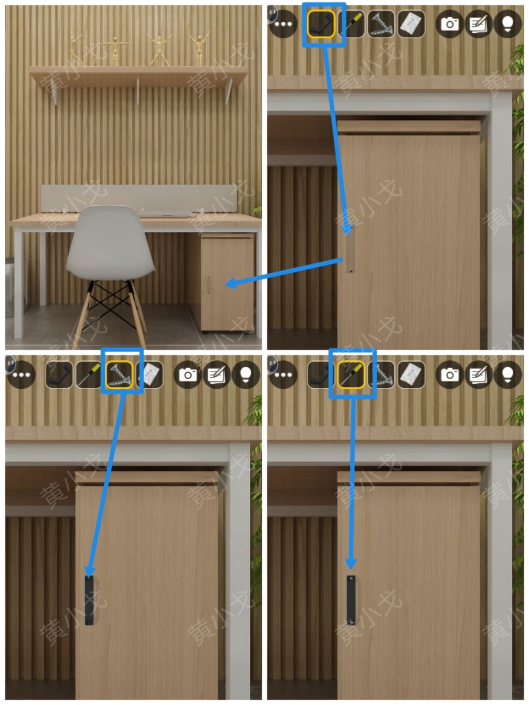 13.点击工位柜子,装上【门把手】和【螺丝钉】,用【螺丝刀】拧紧