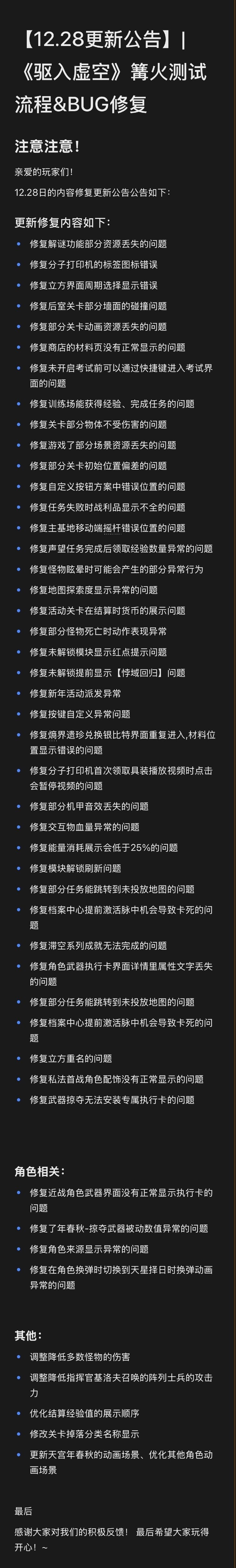 预计本次停服更新时间为12.28日晚上20:00左右,大家记得提前退出哦~