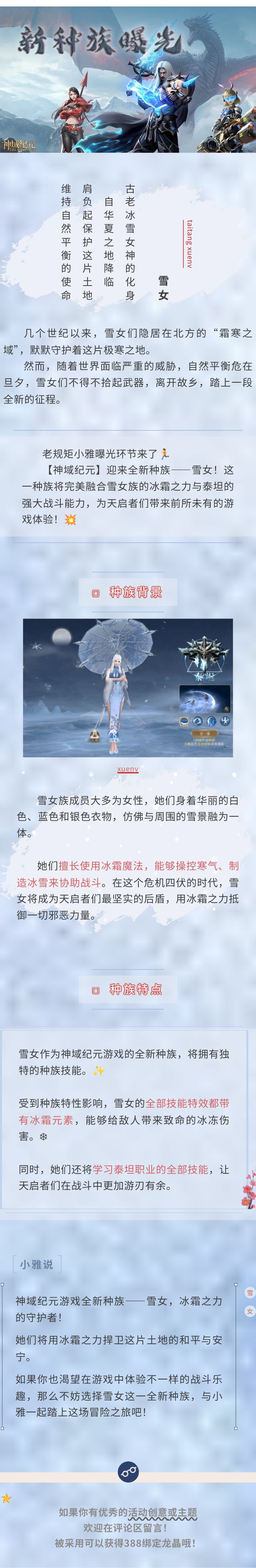 【神域纪元】丨新种族曝光——雪女,冰霜之力的守护者!