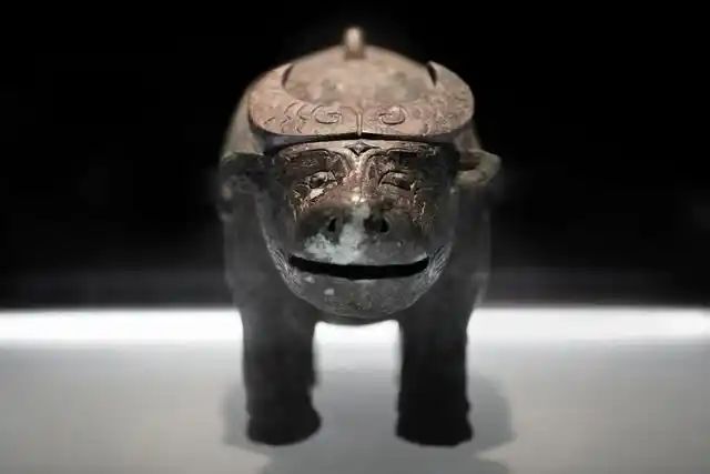 殷商时期——殷人的尚酒风俗十分盛行,对祭祀与酒十分重视,与此同时,他们觉得没有驯 化的牛充满了野性、力量和神秘感,会成为人与神的沟通使者,故而这件陪伴着亚长的酒尊得以被制作出来。