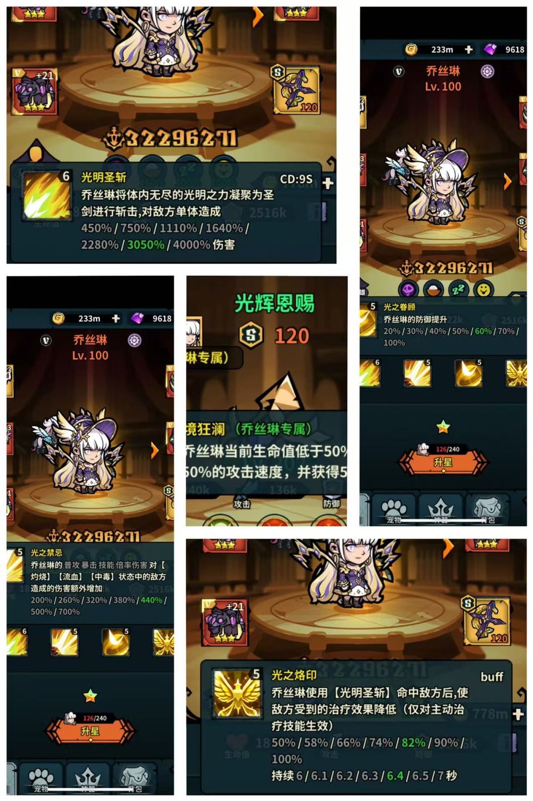 光之眷顾可以使乔丝琳的防御大大提升从20%最高可以提升到百分百的防御,这无疑将会大大提高他的生存能力