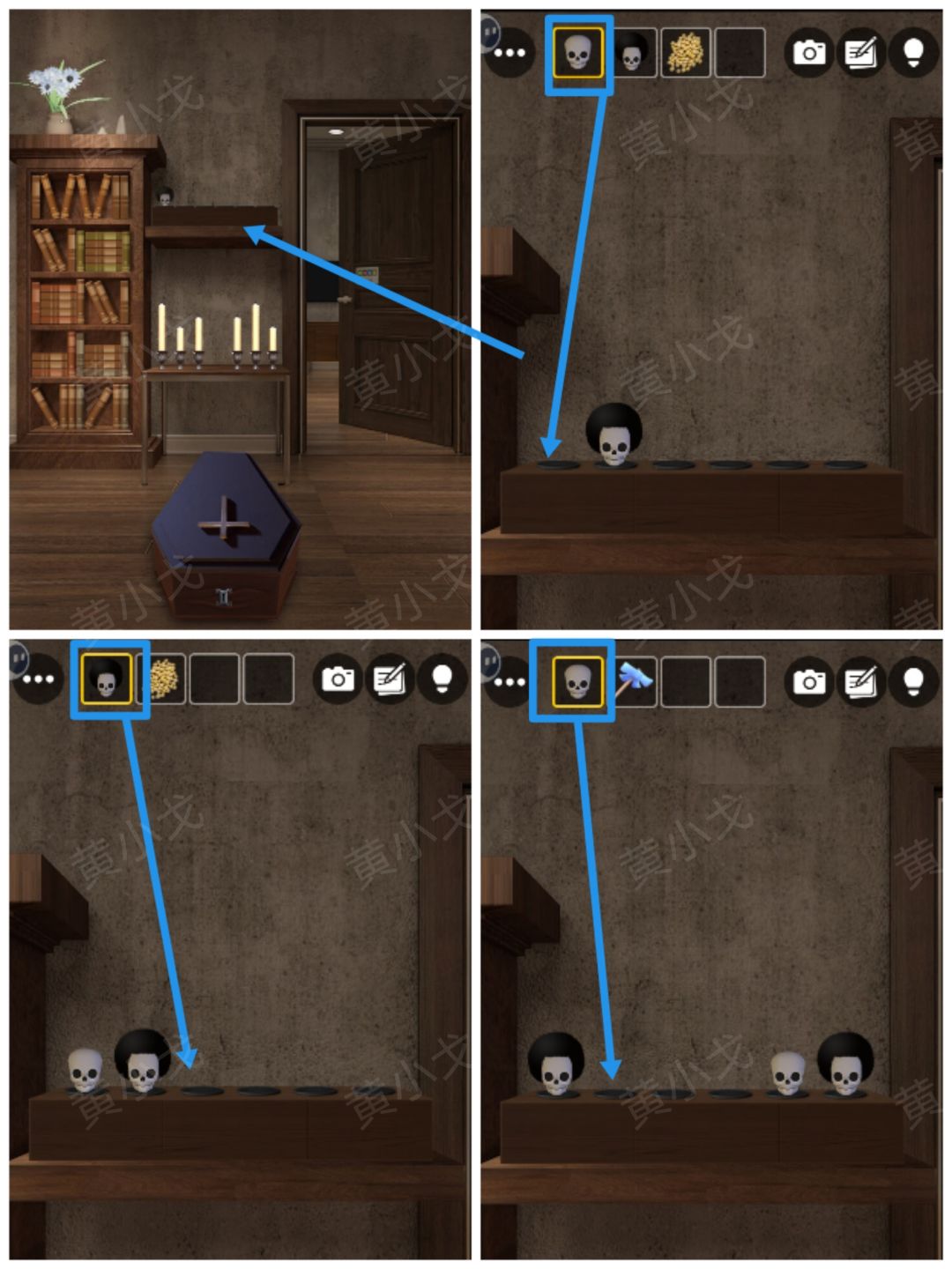 21.点击架子,放上三个【骷髅头】
