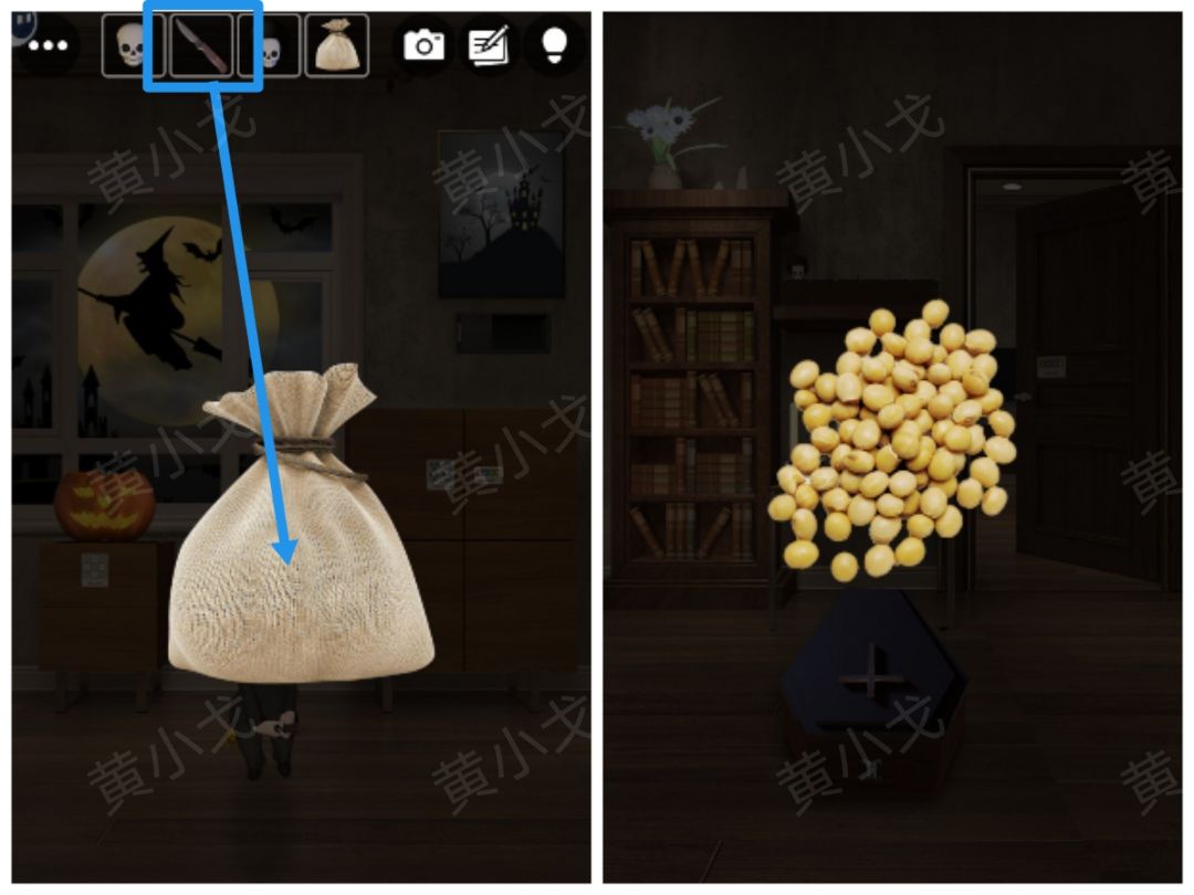 14.用【匕首】割开【袋子】,获得【黄豆】