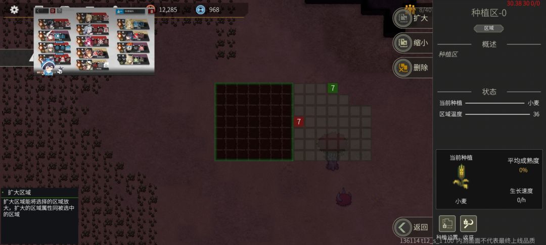 种完一种作物点删除,删除种植区后,可以在其他地方继续种,这样收获时基本会有几千甚至上万的收获,食物,硅木是完全不缺的。