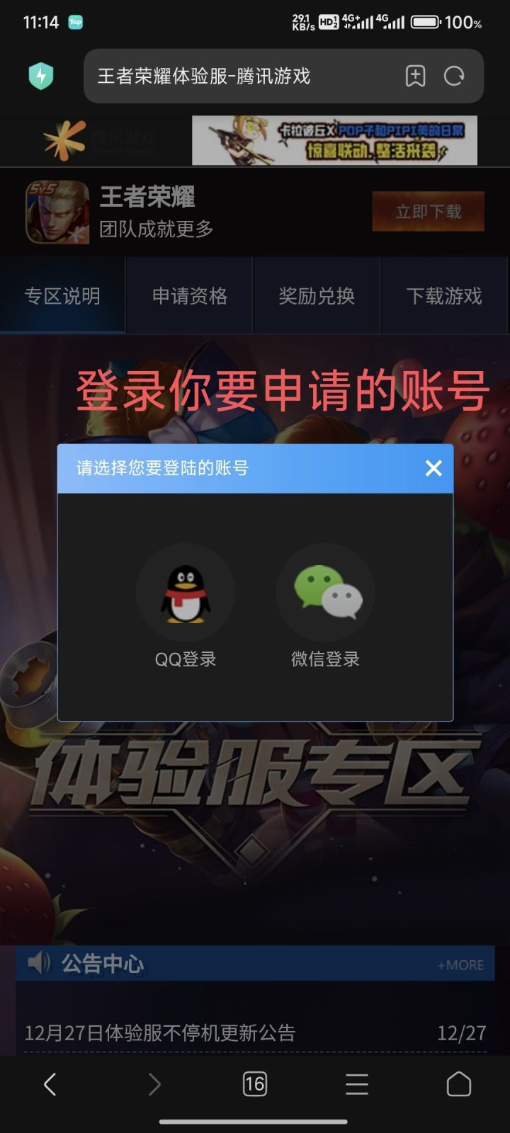 王者荣耀前瞻版 体验服申请