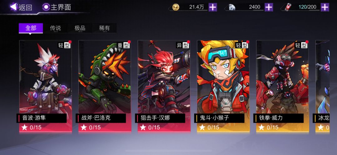 5.抽卡不要只抽角色,先抽出一个传说,然后自选可以选择其他类型的角色,因为天赋塔会有角色类型限制,最好保证每种类型的角色都有一个强力的。接着抽机核,也是优先抽个红的,橙色先等之后看哪个能凑套装,再看怎么样,不然升级资源不够。另外两者最好都分别抽150,把任务奖励做了。