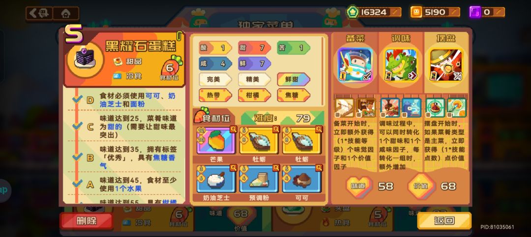 可算让我集齐了s级的菜单,黑曜石蛋糕虽然价值不高但是收益比炖菜高