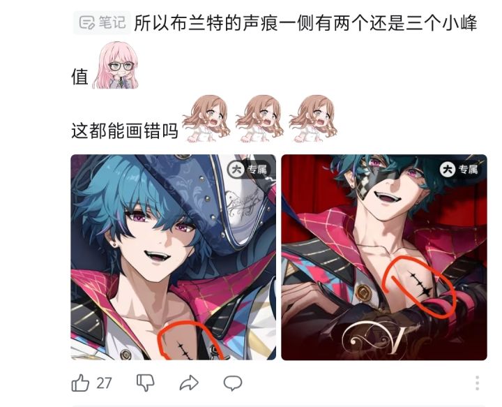 有玩家对布兰特声痕细节提出质疑,认为画错