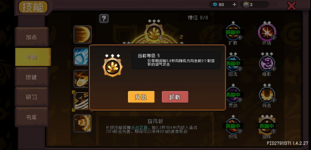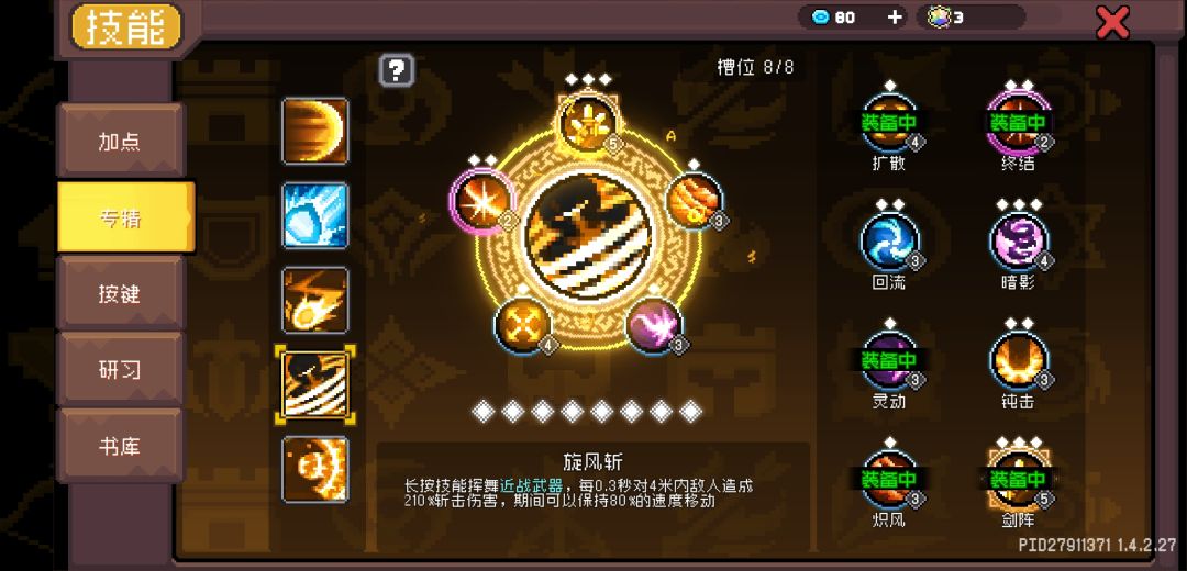 战争律动,实测旋风斩是不会不触发的,所以大风车不用点这个,全都补给剑气就好。