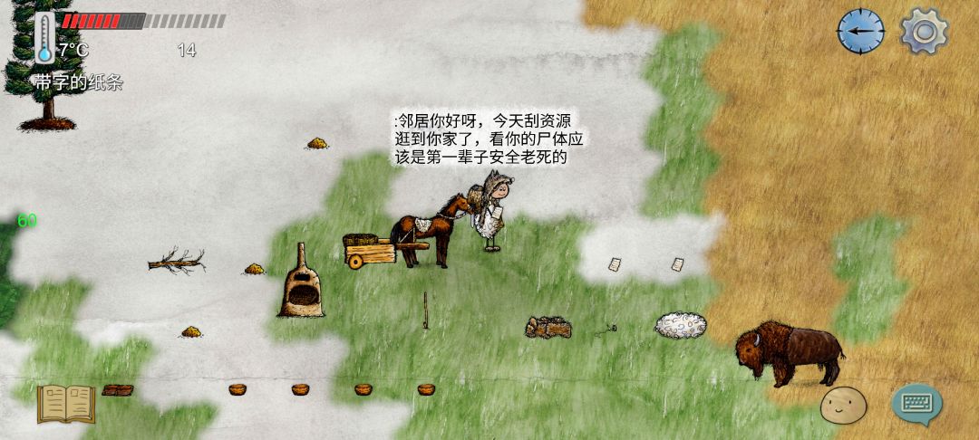 出门闲逛搜资源发现右边新邻居家,尸体在大绿地,看样子应该才第一辈子安全老死的,我家就在正左方向骑马车一分钟就到了,我玩了三天之前也没去右边看过,马上回家做纸嘎羊去留言了,希望你没有断档,以后常来串门(或者直接来投奔我也行啊嘻嘻,虽然我家也才刚起步),后面再往右跑了两分钟在沼泽边缘更大点的遗迹,但是尸体在沼泽芦苇旁边,感觉可能被野猪拱死了,估计凶多吉少了。