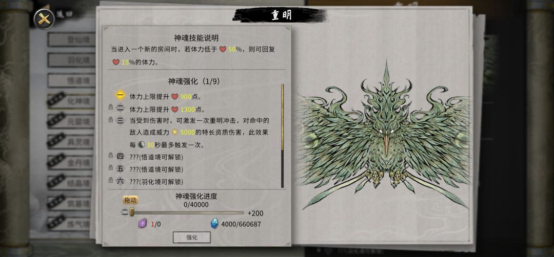 1.升的时候会让你选择四个神魂,保留一个,并获取你保留的这个神魂的特殊效果