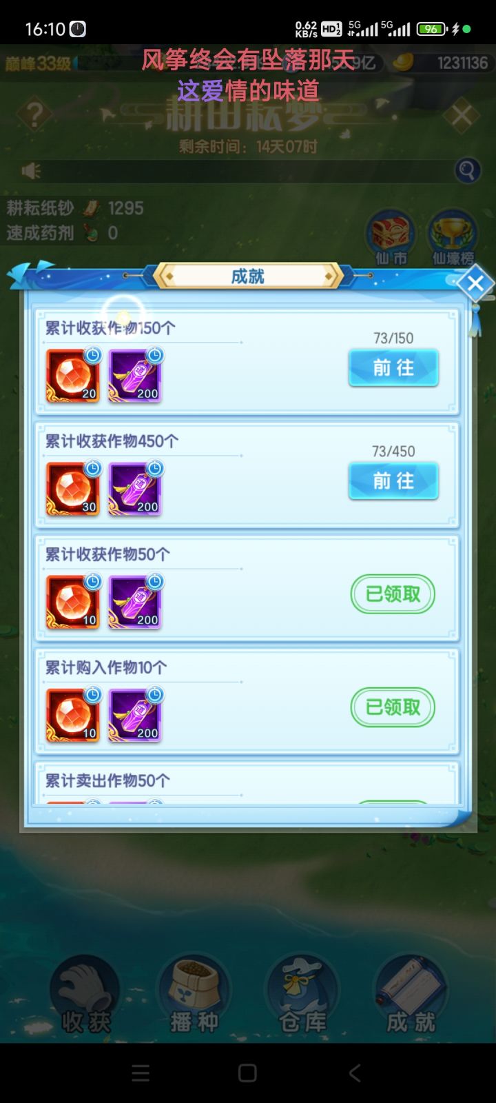 直接买作物,然后卖了,虽然有5%的手续费,但是金钱多了也没什么用