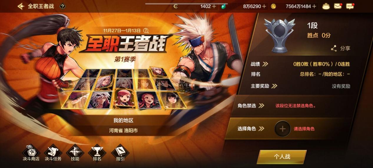 新版本的到来加入了“全职王者战”对战模式,可自由选择所有职业参与战斗,不再需要创建对应职业,就能使用该职业进行决斗!极大的增加了职业PK多样玩法的乐趣,今天主要对“全职王者战”功能做一个简单的介绍,以及奖励部分都有哪些。