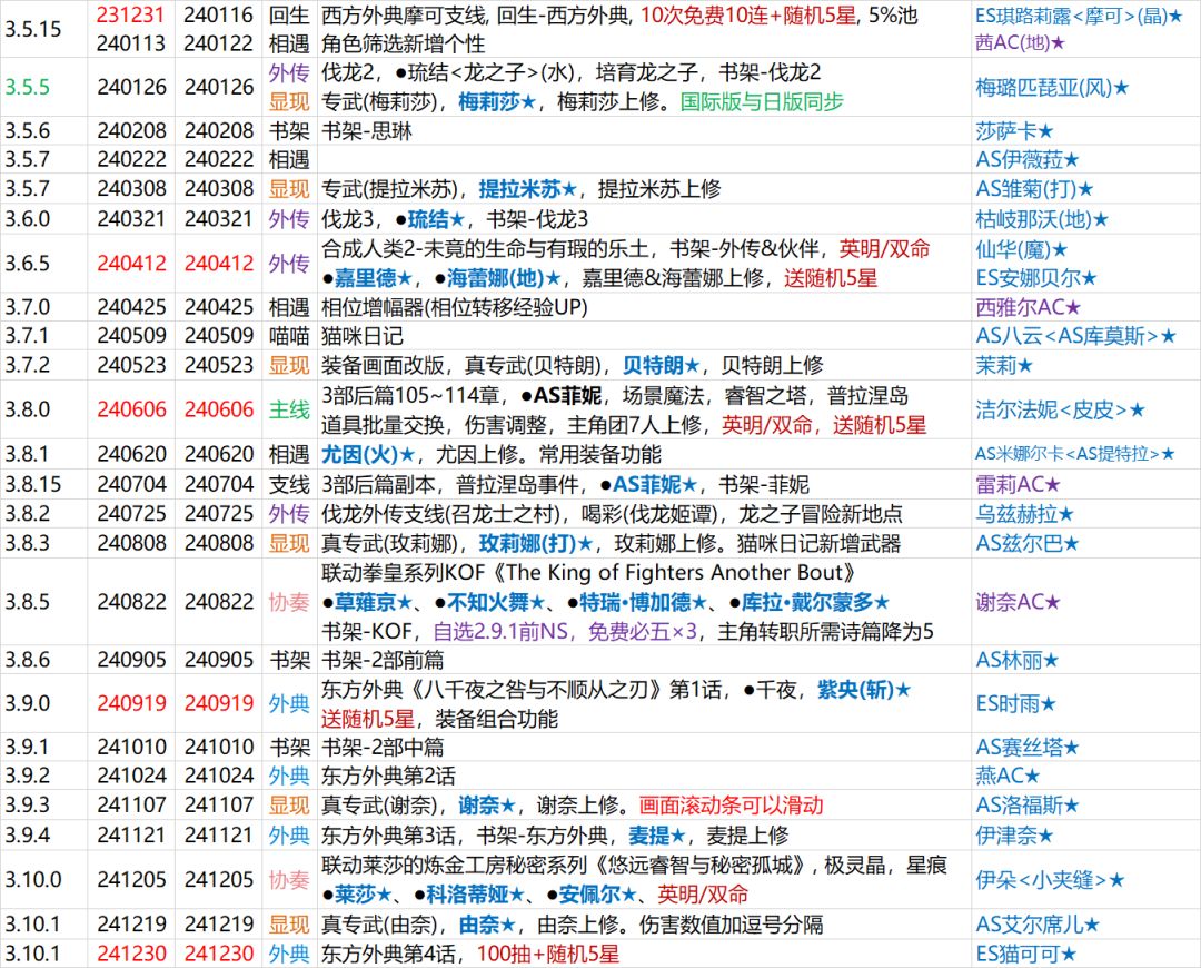 扯远了。同步以后,游戏更新就变为半月更了。不过今年也更新了不少内容。伐龙外传完结了,少有的举办了2次联动,主线终于到3部后篇了,明年就是完结篇了,东方外典明年3月完结,那么4月周年实装新主线?不过已经做好新主线再分个part1、part2。part1再分个subpart1-1,subpart1-2的准备了。
