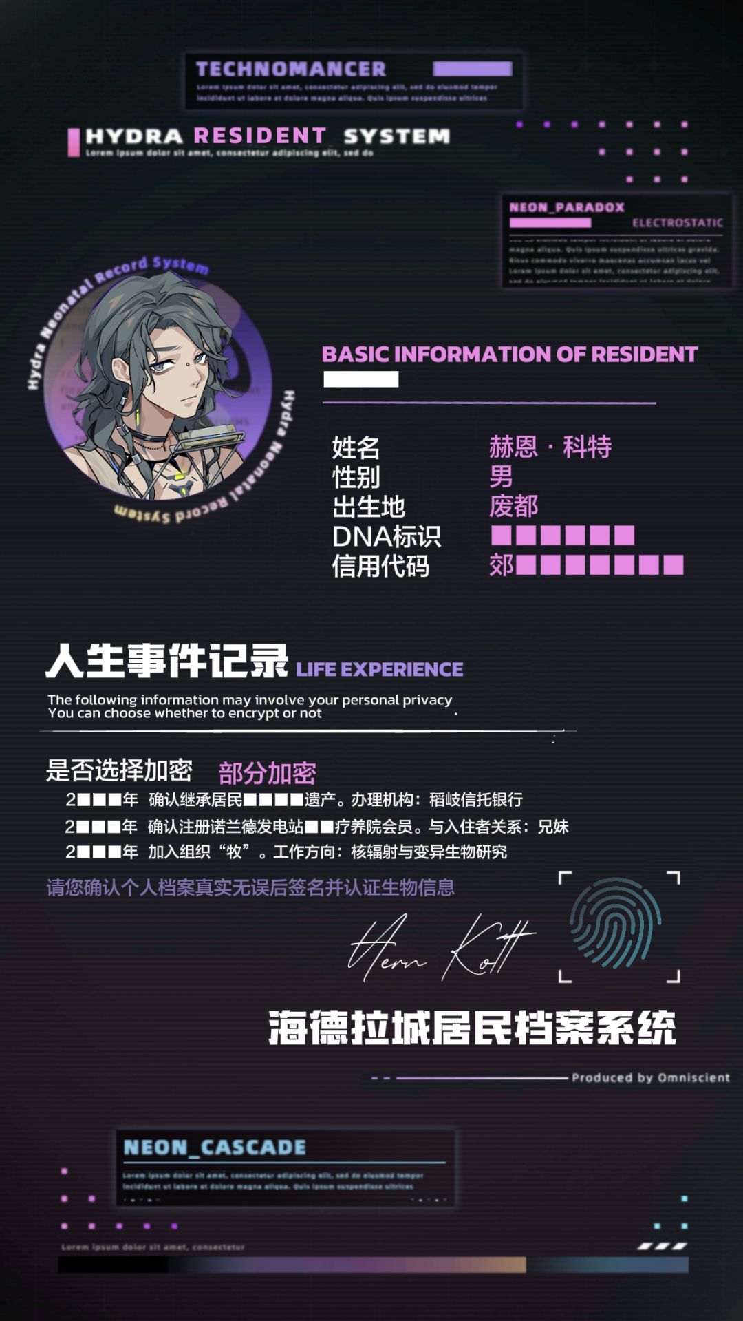 这件事情对赫恩的影响无疑是巨大的,尽管从表面上看,他和另一个妹妹都能够较为成功地适应社会生活,可是严重的创伤应激让他的精神岌岌可危。他将自己封闭起来,害怕与任何人或者生物建立更深一层的联系,抗拒踏足海德拉城外的世界,需要依靠药物入眠。