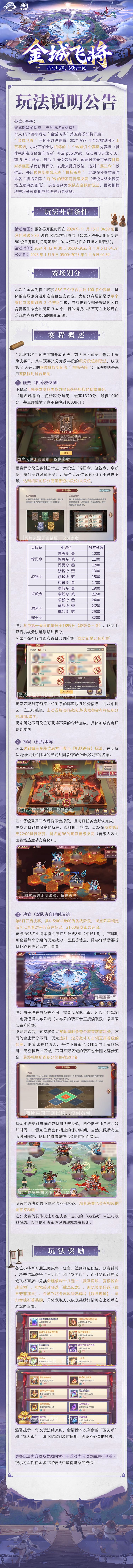 玩法公告丨个人PVP玩法“金城飞将”S5明日上线!