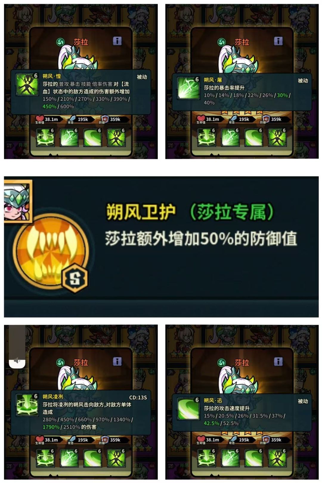 我感觉经过沙拉的神器改动之后,有不少玩家开始考虑并接纳这个莎拉了,因为,莎拉如果用来做输出,那真的是很一般很一般,但是如果用来在前排,那还是可圈可点的,,虽然他的技能都是偏向于输出,但是大家要注意一个点,他会对处于流血状态的目标造成额外伤害,这个效果搭配一些特定的角色,用来打副本简直不要太安逸。装备方面的选择,个人会优先选择防御,然后才是输,当然了,专属神器是必不可少的。