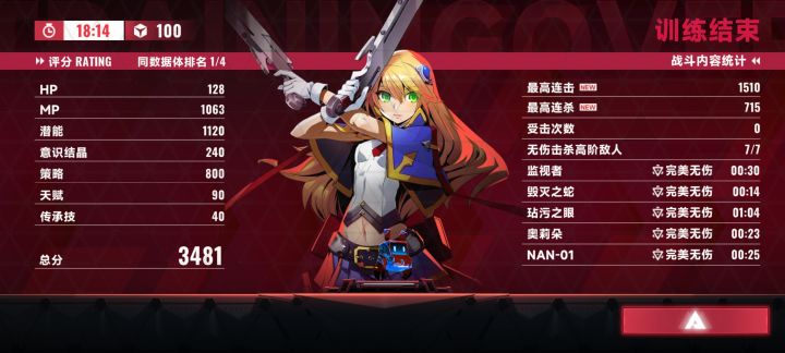 诺艾尔,混沌100,无伤,满潜,全金,高MP首通 ,附上全金策略。