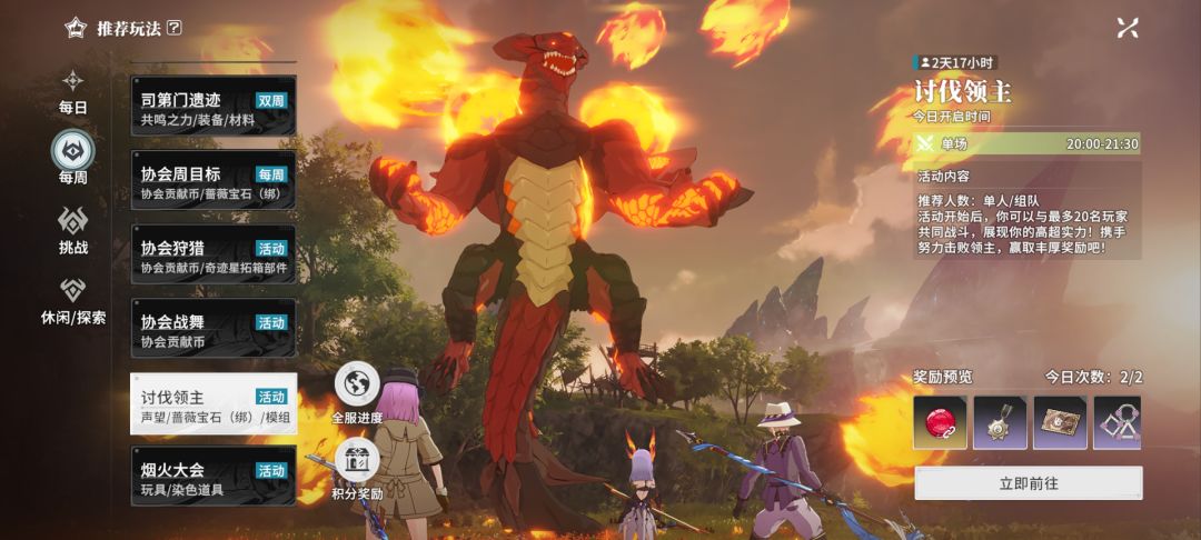 活动开始后,你可以与最多20名玩家共同战斗,展现你的高超实力!携手努力击败领主,赢取丰厚奖励吧!
