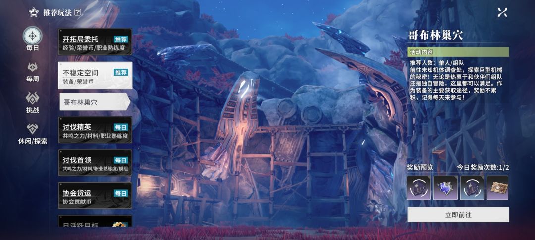 前往未知机体调查处,探索巨型机械的秘密!无论是热衷于和伙伴们组队还是独自冒险,这里都可以满足。作为装备的主要获取途径,奖励不累积,记得每天来参与!