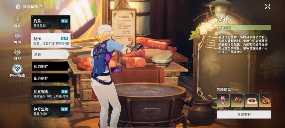 合理搭配主材、辅材可以成功烹制出各种料理和药剂。食用它们能够获得回复和增益效果。为探索和战斗做好充足的战前准备,是每位冒险者不可忽视的小秘诀哦。