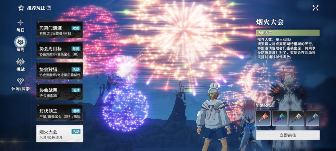 漫天烟火将点亮阿斯特里斯的天空,特别邀请冒险者们盛装出席,共同享受这份浪漫!对了,奖励会在活动当天提前通过邮件发放。