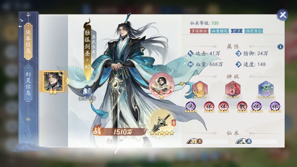 5号位子风林月如,主要起到提升暴击的效果,神祝气气,敏敏,运道,魂器5星,无专属,无装备