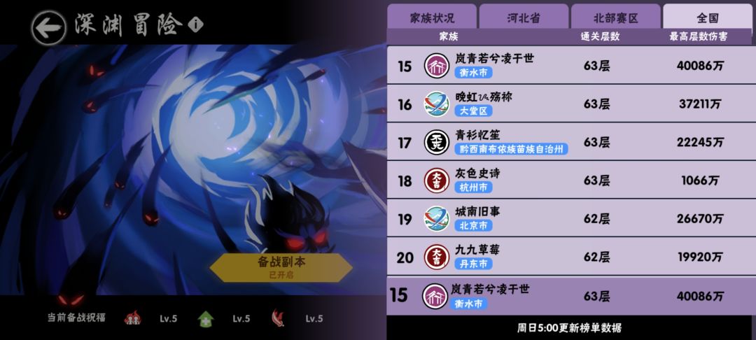 2、深渊巅峰:深渊突破63层,实力无可撼动,长期稳步攀升;