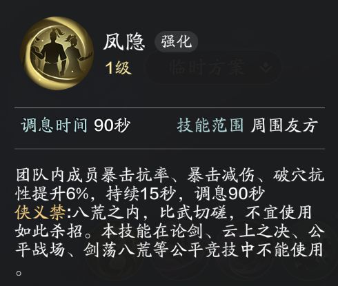 当然,这个技能效果现在已经被削弱过了,正式上线后各位少侠需要根据自己的论剑习惯而决定是否激活。